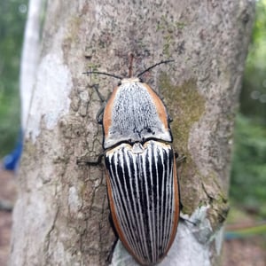 Chalcolepidius rugatus is a species of insect belonging to the family Chrysomelidae. It is commonly known as the rugose leaf beetle due to its distinctive ridged and textured appearance. This beetle is typically found in forested areas, feeding on the leaves of various plants. Its metallic green coloration and intricate patterns make it a visually striking insect.