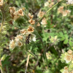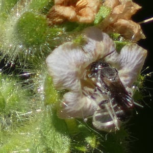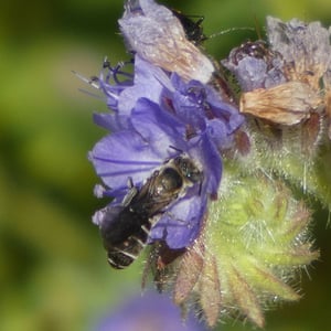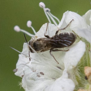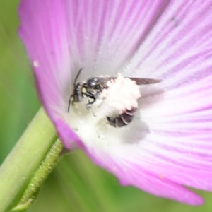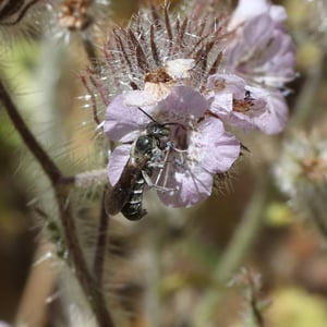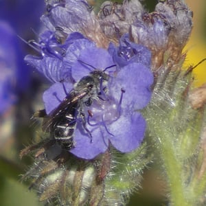 Chelostoma californicum, commonly known as the California mason bee, is a species of solitary bee found in California, United States. These bees are small in size, measuring around 8-10 mm in length. They are known for their metallic blue or greenish-blue coloration and their ability to construct nests using mud or plant resins.