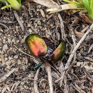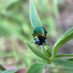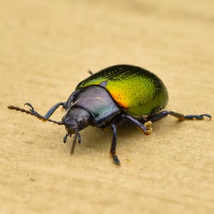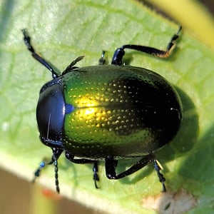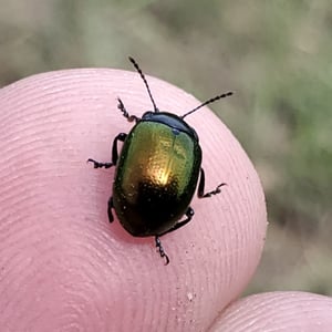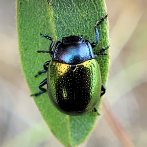 Chrysolina auripennis is a species of leaf beetle commonly found in Europe. It is characterized by its vibrant metallic green coloration and golden wings. These beetles are typically around 6-8 millimeters in length and feed on various plants, particularly those in the family Asteraceae. Chrysolina auripennis is known for its ability to secrete toxic compounds as a defense mechanism against predators.