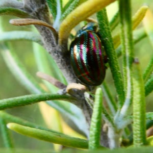 Chrysolina is a genus of leaf beetles belonging to the family Chrysomelidae. These insects are typically small in size, ranging from 5 to 10 millimeters in length. They are known for their vibrant metallic colors, often displaying shades of green, blue, or bronze. Chrysolina beetles are herbivorous and can be found feeding on various plants, particularly those in the family Asteraceae.