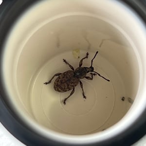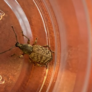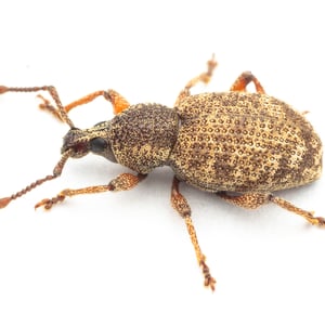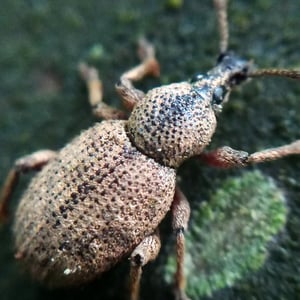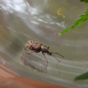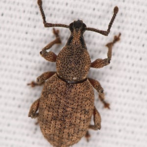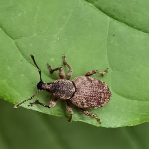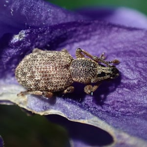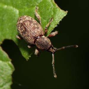 Otiorhynchus singularis, commonly known as the singular weevil, is a species of beetle belonging to the family Curculionidae. It is characterized by its small size, ranging from 5 to 7 millimeters in length, and its dark brown or black coloration. The singular weevil is known for its distinctive snout-like mouthparts, which it uses to feed on a variety of plants, including ornamental shrubs and trees. It is primarily found in temperate regions of Europe and North America.