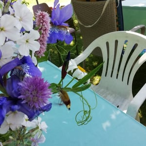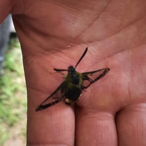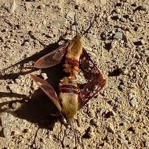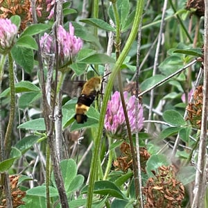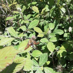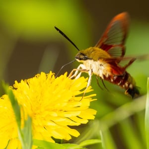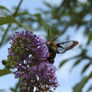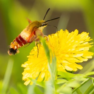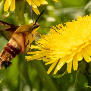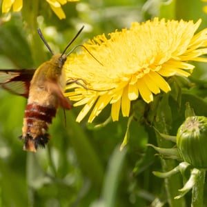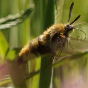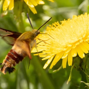 Hemaris is a genus of sphinx moths in the subfamily Macroglossinae, which is native to the Holarctic. Their main host plants are herbs and shrubs of the teasel and honeysuckle families. Moths in genus Hemaris are known collectively as clearwing moths or hummingbird moths in the US and Canada and bee hawk-moths in Britain. The related Old World hummingbird hawk-moths, genus Macroglossum, are similar in appearance and habits. Both genera have tails that are provided with an expansile truncated tuft of hairs, but only Hemaris has the disc of the wings transparent, as these scales are dropped soon after eclosion.