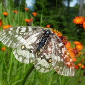 Parnassius clodius is a white butterfly which is found in the United States and Canada. It is a member of the snow Apollo genus (Parnassius) of the swallowtail family (Papilionidae). Its elevation range is 0 - 7000 ft.