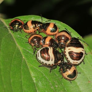 Poecilocoris lewisi, known as the clown stink bug, is a species of shield bug found in eastern Asia.