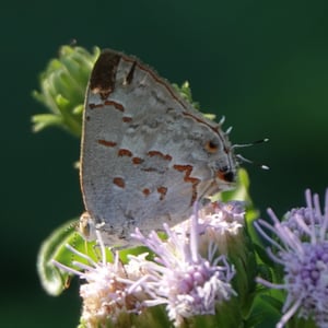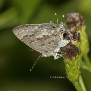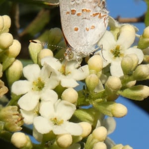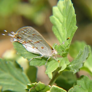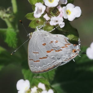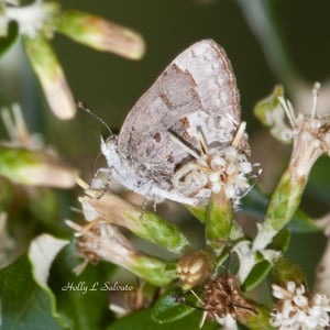 Ministrymon clytie, the Clytie hairstreak, is a butterfly of the family Lycaenidae. It was described by William Henry Edwards in 1877. It is found from southern Arizona, New Mexico and Texas to Mexico, Guatemala and Costa Rica. The habitat consists of tropical forest openings and subtropical thorn forests. The wingspan is 19–22 mm. The upperside is silver blue and the underside pale gray. The forewings with an orange median dash and the hindwings with two lines of orange dashes. Adults are on wing from February to December in southern Texas. They feed on flower nectar, including that of the flowers of the larval host plant. The larvae feed on Pithecellobium species.