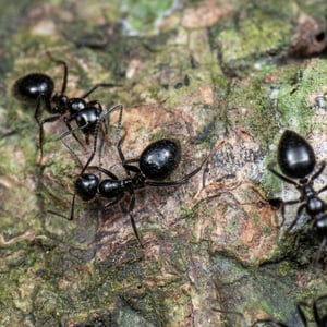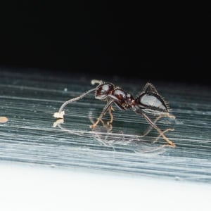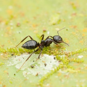 Colobopsis vitrea is a species of ant commonly known as the glass ant. It is found in tropical rainforests of Southeast Asia. These ants are known for their transparent bodies, which allow them to blend seamlessly into their surroundings. They are social insects that live in large colonies and exhibit a unique defense mechanism where they rupture their own bodies to release a sticky substance that immobilizes their enemies.