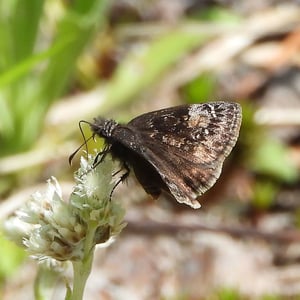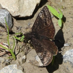 Larva eggs are attached on the underside of plant leaves. Once hatched, the larva consume the surrounding plant leaves and rest from time to time in the shade of plants. Larva continue to eat until they fully mature as caterpillars. At full maturity, caterpillars begin their hibernation to being their transformation into adult butterflies. Adult Duskywings pollinate plants as they consume nectar and seek out another butterfly to mate with. After mating, female Duskywings lay their newly born eggs on the underside of a plant leaf ready to hatch.