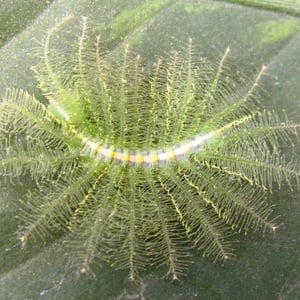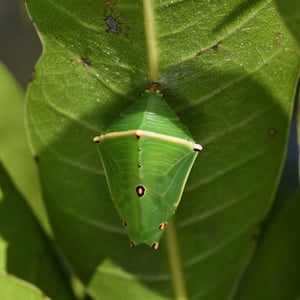 The pupa is green and quadrangular and found especially on mango where it is sometimes treated as a minor pest.