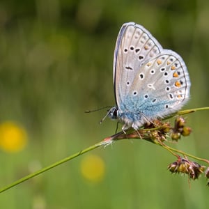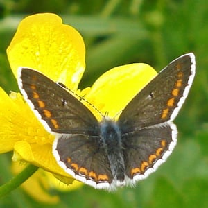The common blue is Britain and Ireland's (and probably Europe's) most common and most widespread blue. It is found as far north as Orkney and on most of the Outer Hebrides. A range of grassland habitats are used: meadows, coastal dunes, woodland clearings, and also many man-made habitats, anywhere their food plants are found.
