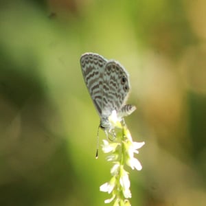 Leptotes is a butterfly genus in the family Lycaenidae. They are commonly known as zebra blues in reference to their zebra-striped undersides. The genus Cyclyrius was recently synonymized with Leptotes and its two species were thus moved to this genus.