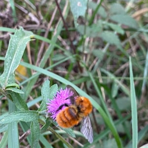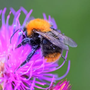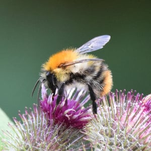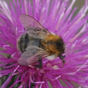 Bombus pascuorum, the common carder bee, is a species of bumblebee present in most of Europe in a wide variety of habitats such as meadows, pastures, waste ground, ditches and embankments, roads, and field margins, as well as gardens and parks in urban areas and forests and forest edges. It is similar in appearance to Bombus muscorum, and is replacing the species in Northern Britain.