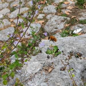 Queens appear between early April and mid-May, and workers appear at the end of April/early May to mid-October. Young queens and drones can be found from mid-August to late October. When queens search for suitable places to nest, they fly just above the vegetation, for example on forest edges, investigating cavities such as holes in the ground or niches in dead wood and grass. The nests can be constructed above or under ground, preferably in old mouse nests, but also in bird nests, barns, and sheds. Nest-building proceeds as follows. The queen collects moss and grass to form a small, hollow sphere whose walls are partly bonded with wax and sealed off. Within this is formed a large bowl of brown wax of about 5 mm in diameter, which is filled with pollen. Thereafter, five to 15 eggs are deposited, and the cell closed. Another 20-mm-high cup is then filled with nectar, thus serving as its own food reserve for bad weather days. After three to five days, the larvae hatch to feed on the pollen. After about a week, the larvae are mature. The adult worker bees, owing to the initially poor supply situation, are relatively small, reaching only about half the body length of the queen and lacking functioning ovaries. Later-hatching bees are much larger. The additional nesting and brood care is dedicated solely to the queen, which no longer leaves the nest. From August, rarely before, the first fully developed females, together with drones, are ready. Drones hatch from unfertilized eggs. In August the B. pascuorum nest, with a diameter of up to 15 - 20 cm, reaches a maximum population size from 60 to 150 individuals. Shortly after this peak, the population quickly decreases. With the queen the entire nest dies, usually in September. Occasionally, individuals survive until October/November. Only the last-hatched females survive, to mate with males. Then they fly in search of a safe place for hibernation.