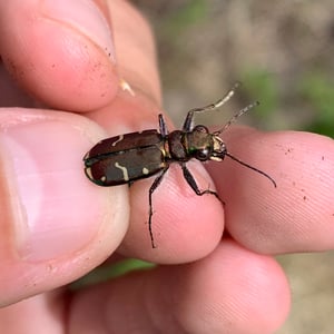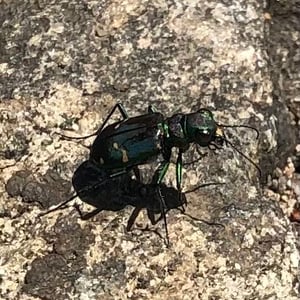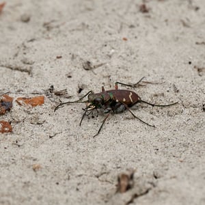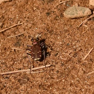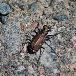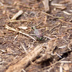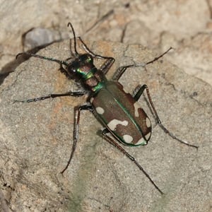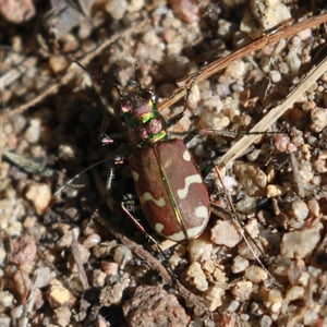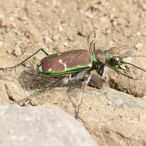 Cicindela limbalis, commonly known as the Violet Ground Beetle, is a species of ground beetle found in various parts of Europe. It is characterized by its vibrant metallic violet or blue-green coloration, which makes it visually striking. These beetles are known for their exceptional speed and agility, as they are capable of running swiftly across the ground to capture their prey. They are typically found in sandy or gravelly habitats, such as coastal areas or riverbanks.