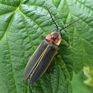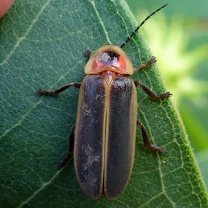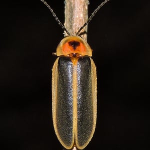 Photinus pyralis, known by the common names common eastern firefly and big dipper firefly, is the most common species of firefly in North America. P. pyralis is a flying and light-producing beetle with a light organ on the ventral side of its abdomen. This organism is sometimes incorrectly classified as Photuris pyralis, which likely results from mistaking the similar-sounding genus Photuris. The Photuris female may also lure a Photinus pyralis to be eaten to obtain spider-repellent steroids called "lucibufagins". In males the light organ covers the entire ventral surface of the three most posterior segments and in females it only covers a portion of the third posterior segment. These fireflies are most noticeable around twilight, in the early part of the evening and hover close to the ground. The species' common name refers to the characteristic flight of the male, which flies in a J-shaped trajectory, lighting on the upswing. During flight, the J-shaped flight pattern is used in combination with patrolling flash patterns while seeking a mate. Their flashes are stimulated by light conditions, not by rhythmic impulses as originally thought.The genome of Photinus pyralis was sequenced in 2018.