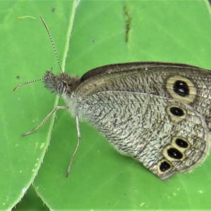 Upperside greyish brown. Forewing with the usual comparatively large, bi-pupilled, yellow-ringed, black preapical ocellus. Hindwing usually with two, sometimes with three, very rarely without any, smaller similar uni-pupilled postdiscal ocelli. Underside greyish white, not very densely covered with transverse short brown striae. Forewing with the preapical ocellus as on the upperside, obscure discal and subterminal dull brown transverse fasciae and a narrow brown ring round the ocellus diffusely produced posteriorly. Hindwing with one apical and typically three postdiscal posterior ocelli placed in a curve; traces of transverse brown discal and subterminal fasciae in most specimens. Antenna, head, thorax and abdomen greyish brown, the abdomen paler beneath. Male without secondary sex-mark.
