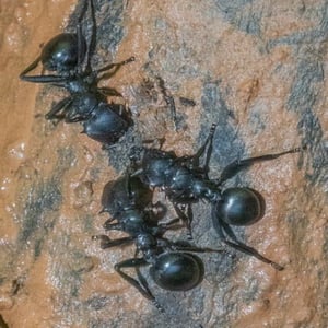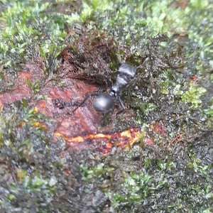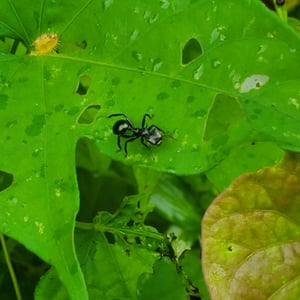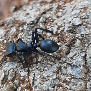 Cephalotes atratus, commonly known as the bullet ant, is a species of arboreal ant found in Central and South America. It is known for its large size, reaching up to 2 centimeters in length, and its distinctive black coloration. The bullet ant is known for its extremely painful sting, which has been described as feeling like being shot by a bullet, hence its name.