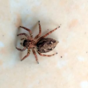 Plexippus petersi is a species of jumping spider native to Asia and has been introduced to Africa and Pacific islands. The male is between 6 and 10 mm in length, and the female is around 10 mm. This spider is commonly known as the tropical flycatcher or small zebra jumper.