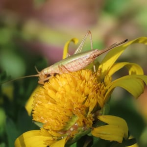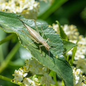 Oecanthus is a genus of insects commonly known as tree crickets. They are small, winged insects that are typically green or brown in color. They are known for their ability to produce a high-pitched, musical chirping sound, which is used to attract mates. Tree crickets are found in various habitats, including forests, gardens, and grasslands, and they feed on plant materials such as leaves and flowers.