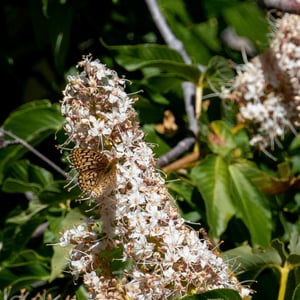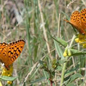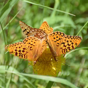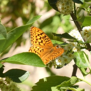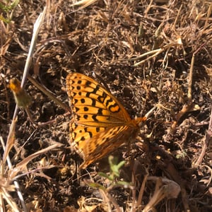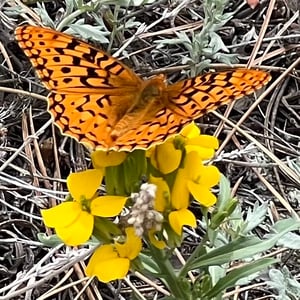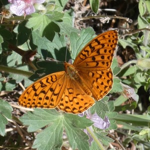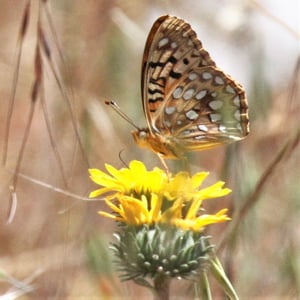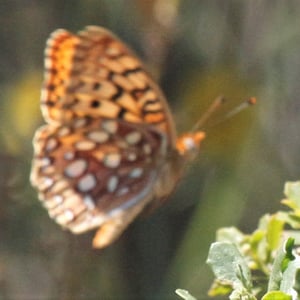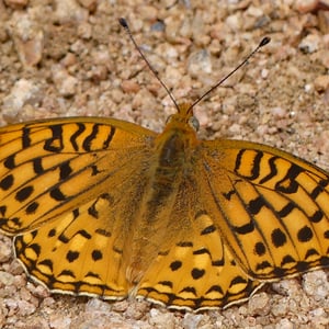 Speyeria coronis, the Coronis fritillary, is a butterfly of the family Nymphalidae of North America. It is common from Baja California to Washington and east to Colorado and western South Dakota and once reported in Alberta. This butterfly is mostly orange and yellow with distinct dark-brown bars on the topside. The wing margins are dark with lighter circles then dark crescents. Silvery spots predominate on the yellowish underside. Wingspan ranges from 60 - 86 mm. Larva feed on Viola species.