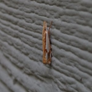 The genus Crambus includes around 155 species of moths in the family Crambidae, distributed globally. The adult stages are called crambid snout moths (a name shared with the rest of the family Crambidae, to distinguish them from Pyralidae snouth moths), while the larvae of Crambus and the related genus Herpetogramma are the sod webworms, which can damage grasses.