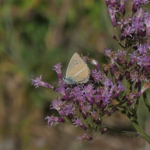 L. damon Schiff. (= biton Sulz.) (81 h). -male large, brilliant shy-blue with a greenish tinge, the margin broadly black, the bright brown underside with or without ocelli, but always with a sharply marked white mesial streak. Female dark brown, above sometimes without traces of reddish submarginal spots. Central and South Europe, throughout Anterior and Central Asia as far as the Tian-shan. – Specimens entirely without ocelli on the hindwing beneath are ab. gillmeri Krod. (= caeca Aign.) while individuals with the ocelli distorted into oval spots or streaks, produced by Krodel by low temperature, are ab. extensa Krod. In ab. agraphomaena Verity the white streak of the underside is obsolescent, while ab. ferreti Farre is a dwarfed form of the male with narrow border on the upperside. – Larva greenish yellow, finely and densely hairy, alternately striped with paler and darker green, the head being brownish and the side-line darker or paler ydlow; until June on Esparset. The ants are so much after it that the presence of some larvae in a breeding cage in a room is sufficient to bring into the house whole crowds of ants, which gather about the cages, sometimes as many as ten ants being found on one larva. Pupa ochreous, above greenish, darker along the back. The butterflies occur in July and August on fields of Sainfoin and do not venture far away from them. They are plentiful where they occur.
