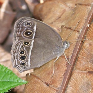 Mycalesis mineus, the dark-brand bush brown, is a species of satyrine butterfly found in Asia.