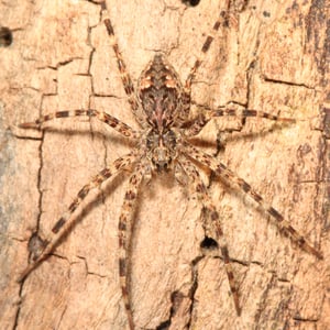 Dolomedes tenebrosus or dark fishing spider is a fishing spider found in the USA and Canada. It is able to bite humans but will run from people. In most cases, the bite is no more severe than a bee or wasp sting.