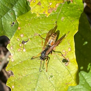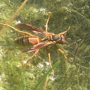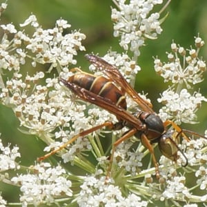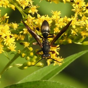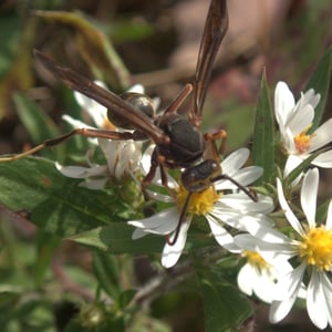 Edwards indicated in his work that social wasps, “collect water, plant fibers, and carbohydrates, and hunt arthropod prey or scavenge animal proteins.” Water is used for the following processes: nest cooling, construction, and metabolism; plant fibers are used for construction, and carbohydrates and protein is used as food and energy. Water is a vital resource for wasps given its many capabilities, and many wasps will go to a variety of places to obtain it, such as puddles and ponds, or even drinking fountains and faucets. Wasps are able to obtain water by imbibing it and regurgitating it once they return to the nest and are able to use it for construction by mixing it with the masticated plant fibers. These plant fibers are collected from dead wood. By mixing the plant fibers with water, wasps are able to create pulp which is then used to help the construction of nests. Polistes fuscatus is considered to be a generalist prey forager, but may also act as a specialist due to its habit of commonly returning to a specific location or to prey on the same species. They use the scavenged animal protein from both vertebrates and arthropods such as: caterpillars, flies, alate ants, termites, spiders, bees, and other wasps to help the development of their brood. Social wasps collect carbohydrates from nectar, sap, and fruits and may store them within the nest; some wasps may even steal or consume carbohydrates from other carbohydrate foraging or making arthropods. Although the foraging of social wasps is not as developed as some other arthropod species given its weakness in recruitment, the ability to communicate to nest mates of the location of a resource stronghold, it may impact the greater ecosystem.
