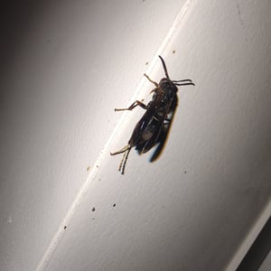 The length of P. fuscatus often ranges between 15 and 21 mm. The fore wing length ranges between 11.5 and 17.0 mm; in general, the fore wing of males is above 13.0 mm, whereas females have a fore wing length above 11.0 mm. Both males and females have rather slender bodies and have a waist that connects the thorax to the abdomen. The female has a venomous sting. The pain of its sting is commonly compared to being pricked with a large needle, such of that of a tattoo. Like coloration (below), length can also vary by season of emergence. The physical characteristics of the P. fuscatus are highly dependent on the geographic location of its habitat. Throughout the United States, three color pattern trends represent different regions throughout the country. The male is identified by its darkened apical flagellomeres in addition to its darkened dorsal surface of the apical flagellomeres that is common to other species of wasps. Northern females on the other hand are easily identified by the blackening of their entire bodies which may or may not have markings of other colors. Many southern P. fuscatus individuals, however, have additional markings and may resemble wasps of other species. The facial and abdominal markings of P. fuscatus are highly variable, including a variety of different patterns, such as small dots, long stripes, clypeus blotches, yellow abdominal dots, upper clypeus stripes, and combinations of both clypeus edge and tip colorations. Furthermore, some wasps have these facial and abdominal patterns in brown and black instead of yellow. These marking colors, however, are often influenced by the geographic location of the wasp.