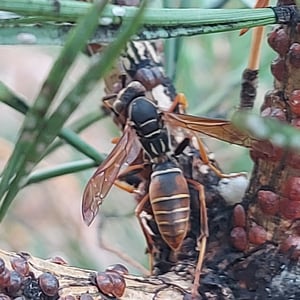 Polistes fuscatus eats arthropod prey, animal proteins, carbohydrates and protein. They will eat caterpillars, flies, ants, termites, spiders, bees, and other wasps. Carbohydrates may include nectar, sap, and fruits.