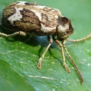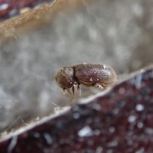 Ptinidae is a family of small to medium-sized beetles commonly known as spider beetles or deathwatch beetles. They are characterized by their oval-shaped bodies and long antennae. Ptinidae beetles are typically found in dark and damp environments, such as old buildings, where they feed on a variety of organic materials, including dead insects, fungi, and plant matter. Some species of Ptinidae are considered pests as they can infest stored food products and damage wooden structures.