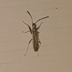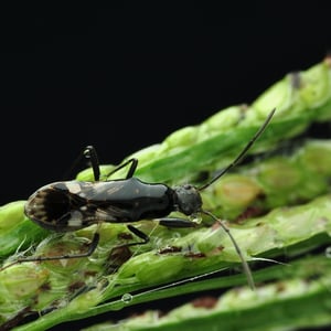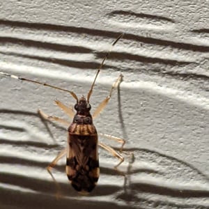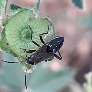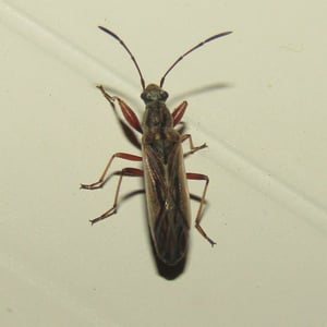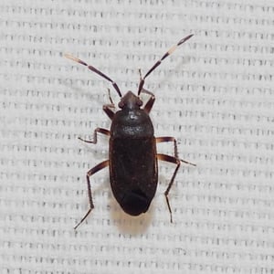 Rhyparochromidae is a family of insects commonly known as dirt-colored bugs or ground bugs. They are small to medium-sized insects, typically measuring between 5 to 15 millimeters in length. These bugs are characterized by their dull and earthy coloration, which helps them blend in with their surroundings. They are often found in leaf litter, soil, or under rocks, and feed on decaying organic matter or small invertebrates.