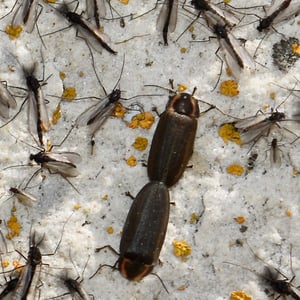 Ellychnia is a nocturnal insect belonging to the family Lampyridae, commonly known as fireflies or lightning bugs. It is characterized by its small size, measuring around 1 centimeter in length, and its dark brown or black coloration. Ellychnia possesses bioluminescent organs on its abdomen, which emit a greenish-yellow light used for communication and mating purposes.
