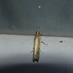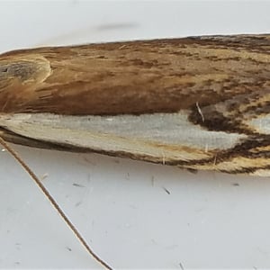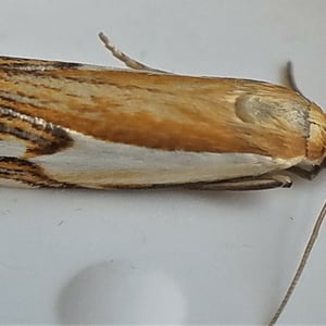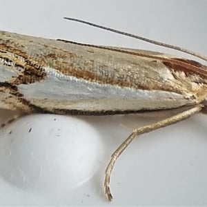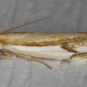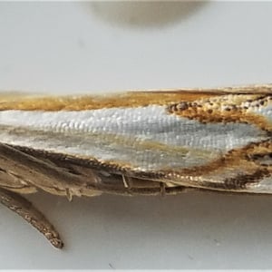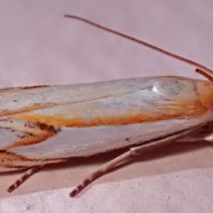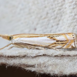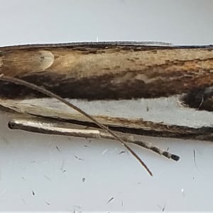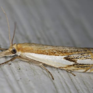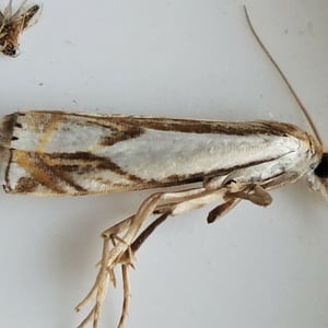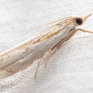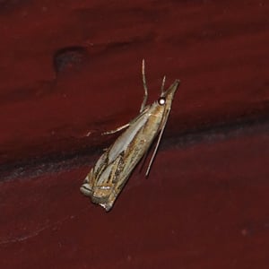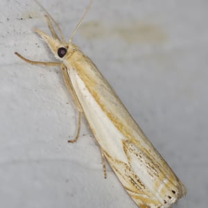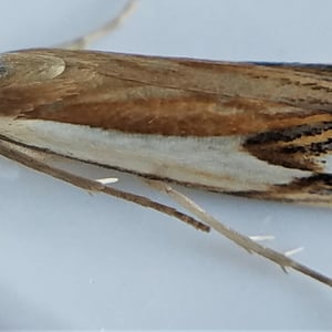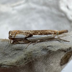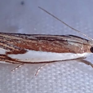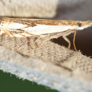 Crambus agitatellus, the double-banded grass-veneer moth, is a moth of the family Crambidae. It is found in the eastern two-thirds of the United States and south-eastern Canada. The wingspan is 17–22 mm. Adults are on wing from June to August. The larvae feed on various grasses and other low-growing plants.