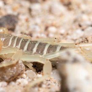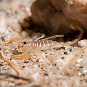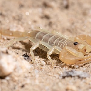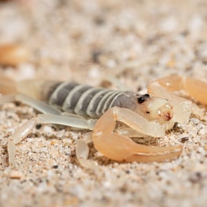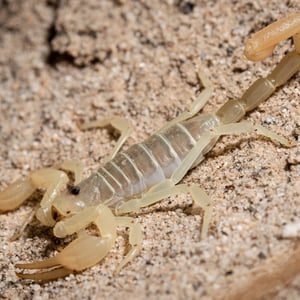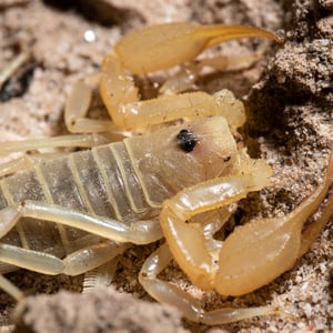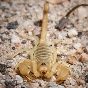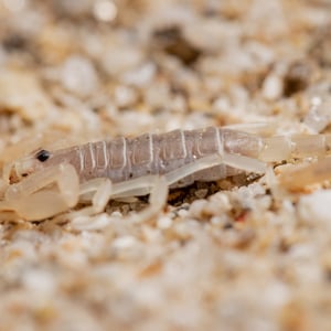 Smeringurus mesaensis, the dune scorpion or giant sand scorpion, is a species of scorpion in the family Vaejovidae. It is a common species found in the deserts of the south-western United States. The dune scorpion is approximately 72 mm in length and 2.0 g in mass. They are fossorial and solitary, though young will aggregate shortly after dispersing from their mother. Females of this species are typically larger than males, with males traveling to find females during mating season. Smeringurus mesaensis are nocturnal creatures: they have been studied to remain active during the hours of 9 p.m. and 3 a.m., and this accounts for its lack of visibility during the daytime.