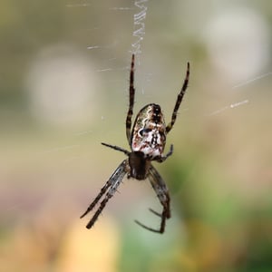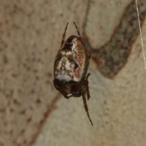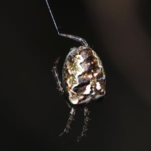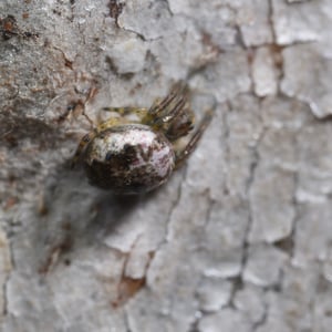 The spider species Plebs eburnus is commonly referred to as the eastern grass orb-weaver or the eastern bush orb-weaver, and sometimes more simply as the bush orb-weaver. It is an orb-weaver spider from the family Araneidae endemic to Australia. It is a very common spider with distinctive white markings (although these marking can be quite variable), which give it the species name eburnus pertaining to ivory. It is found in scrub and tall grasses where the female constructs a vertical web usually no more than 2 metres from the ground, and stays there day and night. The web of some of these spiders has been seen to be decorated with nearly vertical stabilimentum (like a clockface at 5 minutes to 5 or its mirror image). The stabilimentum of the related P.cyphoxis is usually observed vertical (like a clockface at 6 o'clock).