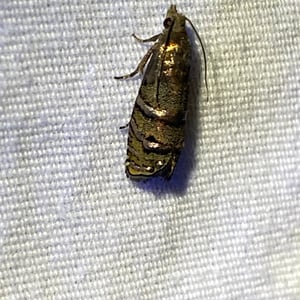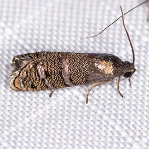 Cydia toreuta, the eastern pine seedworm moth, is a moth of the family Tortricidae. It is found in North America. The wingspan is about 13 mm. The larvae feed on the seeds of Pinus resinosa and Pinus banksiana.