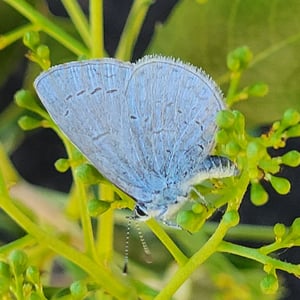 Celastrina echo, commonly known as the Echo Blue butterfly, is a small insect belonging to the family Lycaenidae. It is characterized by its vibrant blue wings with black margins and white fringes. This species is found in North America, particularly in open woodlands and meadows. The larvae of Celastrina echo feed on the leaves of various host plants, including dogwood and blueberry.
