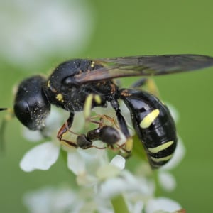 Ectemnius is a genus of solitary wasps belonging to the family Crabronidae. These insects are commonly known as sand wasps due to their preference for nesting in sandy soil. They are medium-sized wasps, typically measuring around 1-2 centimeters in length. Ectemnius wasps are known for their impressive hunting skills, as they capture and paralyze various types of prey, including flies and bees, to feed their larvae.