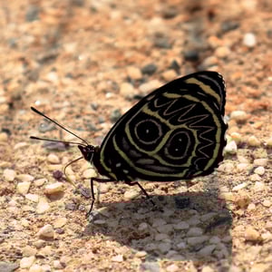 Callicore sorana is a species of butterfly belonging to the family Nymphalidae. It is commonly known as the Sorana Callicore or the Sorana Eighty-eight. This butterfly is found in the tropical regions of South America, particularly in countries like Brazil, Peru, and Ecuador. It is characterized by its striking black wings with vibrant orange and white markings, making it a visually captivating insect.