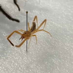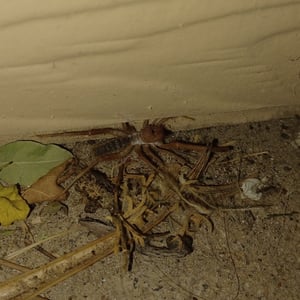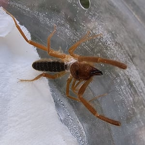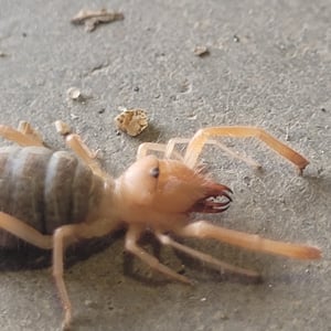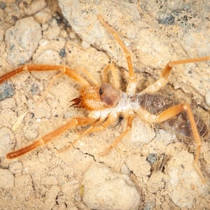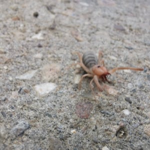 Eremobates is a genus of arachnids of the order Solifugae. About 2 inches long, these fast-moving arachnids have the largest jaw size to body ratio of any animal. They are not venomous, but have a remarkably powerful bite. Often hunting at night, they have poor eyesight and navigate mostly by use of a pair of pedipalps. They are solitary creatures, coming together only to mate, the male using his pedipalps to transfer seminal fluid to the female, which buries between 50 and 200 eggs in the ground. The female stays with the young until they are mature enough to hunt and defend themselves, feeding and caring for them. Species of the genus Eremobates are generally found in the western United States, and at northern end into southwestern Canada, and south into Mexico. The genus Eremobates contains these species: - Eremobates actenidia Muma, 1989 - Eremobates affinis (Kraepelin, 1899) - Eremobates ajoanus Muma & Brookhart, 1988 - Eremobates angustus Muma, 1951 - Eremobates arizonicus (Roewer, 1934) - Eremobates ascopulatus Muma, 1951 - Eremobates aztecus Pocock, 1902 - Eremobates bajadae Muma & Brookhart, 1988 - Eremobates bajaensis Muma, 1986 - Eremobates bantai Brookhart, 1965 - Eremobates becki Muma, 1986 - Eremobates bixleri Muma & Brookhart, 1988 - Eremobates californicus (Simon, 1879) - Eremobates chihuaensis Brookhart & Cushing, 2002 - Eremobates cinerascens (C. L. Koch, 1842) - Eremobates clarus Muma, 1989 - Eremobates coahuilanus Muma, 1986 - Eremobates constrictus (Putnam, 1882) - Eremobates corpink Brookhart & Cushing, 2004 - Eremobates cruzi Muma, 1951 - Eremobates ctenidiellus Muma, 1951 - Eremobates dentilis Brookhart & Muma, 1981 - Eremobates dilatatus (Putnam, 1882) - Eremobates docolora Brookhart & Muma, 1981 - Eremobates durangonus Roewer, 1934 - Eremobates fagei (Roewer, 1934) - Eremobates formicarius (C. L. Koch, 1842) - Eremobates gerbae Brookhart & Cushing, 2002 - Eremobates girardi (Putnam, 1883) - Eremobates gracilidens Muma, 1951 - Eremobates guenini (Roewer, 1934) - Eremobates hessei (Roewer, 1934) - Eremobates hodai Muma, 1989 - Eremobates hystrix (Mello-Leitao, 1942) - Eremobates icenogelei Brookhart & Cushing, 2004 - Eremobates inyoanus Muma & Brookhart, 1988 - Eremobates kastoni Muma & Brookhart, 1988 - Eremobates kiseri Muma & Brookhart, 1988 - Eremobates kraepelini Muma, 1951 - Eremobates lapazi Muma, 1986 - Eremobates leechi Muma & Brookhart, 1988 - Eremobates legalis Harvey, 2002 - Eremobates lentiginosus (Kraepelin, 1899) - Eremobates marathoni Muma, 1951 - Eremobates mormonus (Roewer, 1934) - Eremobates nanus Muma, 1962 - Eremobates nivis Muma & Brookhart, 1988 - Eremobates nodularis Muma, 1951 - Eremobates norrisi Muma & Brookhart, 1988 - Eremobates otavonae Muma & Brookhart, 1988 - Eremobates pallidus Muma & Brookhart, 1988 - Eremobates pallipes (Say, 1823) - Eremobates palpisetulosus Fichter, 1941 - Eremobates papillatus Muma, 1970 - Eremobates pimanus Muma & Brookhart, 1988 - Eremobates polhemusi Muma & Brookhart, 1988 - Eremobates purpusi (Roewer, 1934) - Eremobates putnami (Banks, 1898) - Eremobates pyriflora Muma & Brookhart, 1988 - Eremobates scaber (Kraepelin, 1899) - Eremobates scopulatellus Muma & Brookhart, 1988 - Eremobates scopulatus Muma, 1951 - Eremobates similis Muma, 1951 - Eremobates simoni Muma, 1970 - Eremobates socal Brookhart & Cushing, 2004 - Eremobates spissus Muma & Brookhart, 1988 - Eremobates suspectus Muma, 1951 - Eremobates tejonus Chamberlin, 1925 - Eremobates texanus Muma & Brookhart, 1988 - Eremobates titschacki (Roewer, 1934) - Eremobates tuberculatus (Kraepelin, 1899) - Eremobates vallis Muma, 1989 - Eremobates vicinus Muma, 1963 - Eremobates villosus Muma, 1951 - Eremobates williamsi Muma & Brookhart, 1951 - Eremobates woodruffi Brookhart & Muma, 1988 - Eremobates zinni Muma, 1951