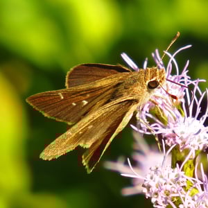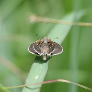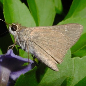 Lerodea eufala, the Eufala skipper or rice leaffolder, is a butterfly of the family Hesperiidae. It is found from the coast of Georgia, south through Florida and west across the southern United States to southern California, south through Mexico and Central America to Patagonia. In the summer, it expands its range north to central California, North Dakota, southern Wisconsin, northern Michigan and Washington, D.C. The wingspan is 25–32 mm. There are two generations, with adults on wing from February to October in the deep south. There are multiple generations throughout the year in Florida, southern Texas and Arizona. The larvae feed on various grasses including Sorghum halepense, Cynodon dactylon and Saccharum officinarum. Adults feed on the nectar from various flowers including croton, alfalfa, composites and lippia.