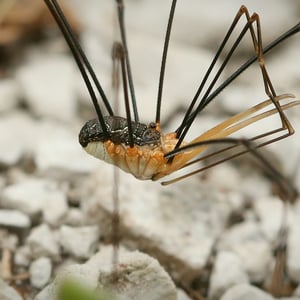 Phalangium opilio is normally an univoltine species and overwinters as eggs. Eggs are laid in moist areas and hatch in three- five months. The immatures undergo several molts and reach maturity in two-three months. These harvestmans usually feed on soft-bodied animals such as aphids, caterpillars, leafhoppers, beetle larvae, mites, but sometime it may scavenge on hard-bodied animals such as various arthropods. They ares also known to feed on Helicoverpa zea eggs, and thus can act as biological pest control for soybean crops. The species is nocturnal, as is typical of opilionids.