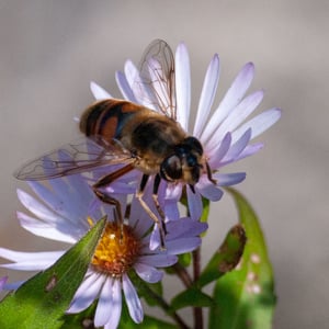 Common drone flies are active during much of the year, from March to December, and sometimes they are more numerous than honeybees, especially during autumn in urban areas. Males and females occur in roughly equal numbers in summer and autumn, but males are very rare in the spring, when fertilized females come out of hibernation.