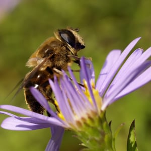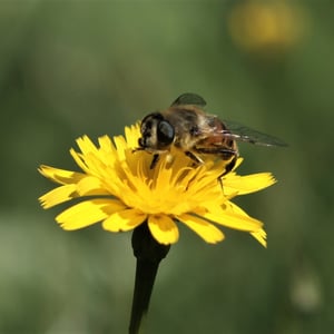 Eristalis tenax, the common drone fly, is a common, migratory, cosmopolitan species of hover fly. It is the most widely distributed syrphid species in the world, and is known from all regions except the Antarctic. It has been introduced into North America and is widely established. It can be found in gardens and fields in Europe and Australia. It has also been found in the Himalayas.