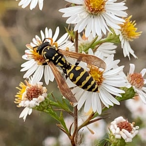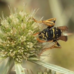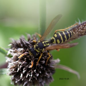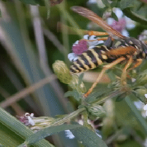 The European paper wasp (Polistes dominula) is one of the most common and well-known species of social wasps in the genus Polistes. Its diet is more diverse than those of most Polistes species—many genera of insects versus mainly caterpillars in other Polistes—giving it superior survivability compared to other wasp species during a shortage of resources. The dominant females are the principal egg layers, while the subordinate females ("auxiliaries") or workers primarily forage and do not lay eggs. This hierarchy is not permanent, though; when the queen is removed from the nest, the second-most dominant female takes over the role of the previous queen. Dominance in females is determined by the severity of the scatteredness in the coloration of the clypeus (face), whereas dominance in males is shown by the variation of spots of their abdomens. P. dominula is common and cosmopolitan due to their exceptional survival features such as productive colony cycle, short development time, and higher ability to endure predator attacks. These wasps have a lek-based mating system. Unlike most social insects, 35% of P. dominula wasps in a colony are unrelated. It is considered an invasive species in Canada and the United States.