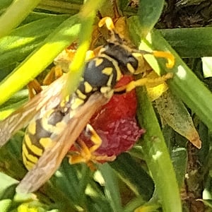 Behavioral adaptations of P. dominula have allowed it to expand outside its native range and invade the United States and Canada. While most Polistes species in the United States feed only on caterpillars, P. dominula eats many different types of insects. It also nests in areas with better protection, so is able to avoid predation that has affected many other Polistes species. Much of North America has a very similar ecology and habitat to that of Europe, and this has allowed a faster and more successful colonization. P. dominula was also compared to and found to be more productive than Polistes fuscatus, which is indigenous to the United States and Canada. P. dominula produces workers about a week earlier and forages earlier in the day than P. fuscatus. It is a concern for cherry and grape growers in British Columbia, as it injures the fruit by biting off the skin. It also spreads yeast and fungi that harm fruit and can be a nuisance to workers and pickers at harvest.
