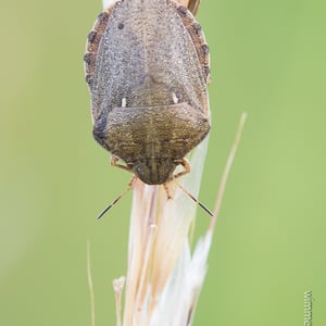 Eurygaster maura, commonly known as the cereal bug or the sunn pest, is an insect belonging to the family Scutelleridae. It is a medium-sized insect, measuring around 10-12 mm in length, with a distinct shield-shaped body. Eurygaster maura is a major pest of cereal crops, particularly wheat and barley, causing significant damage by feeding on the developing grains. It is widely distributed in Europe, Asia, and North Africa.