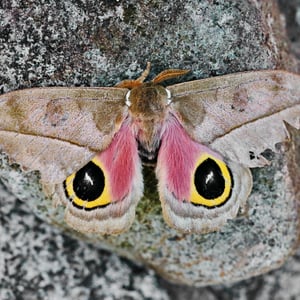 Automeris is a genus of moths in the family Saturniidae and the subfamily Hemileucinae. As of 1996 there were 124 species, and more have since been described. These moths are generally characterized by the eyelike patches on the hindwings and the leaflike pattern on the forewings, an example of crypsis. The genus was first described by Jacob Hübner in 1819 and it is distributed in the Neotropical realm.