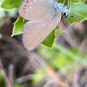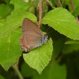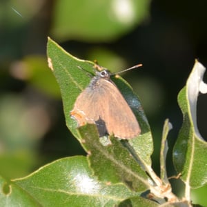 Satyrium esculi, the false ilex hairstreak, is a butterfly in the family Lycaenidae. The species was first described by Jacob Hübner in 1804.